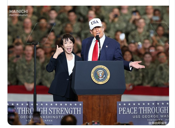 高市のピョンピョン、自国領土内の米軍基地に大統領に招待してもらって米兵に囲まれてハシャいでるんだから、まじで恥とか誇りとかはないのか?