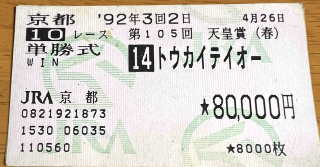 92年の天皇賞春、トウカイテイオーは1.5倍かぁ。当時まだ無敗だったらしい。 https://db.netkeiba.com/race/199208030210/